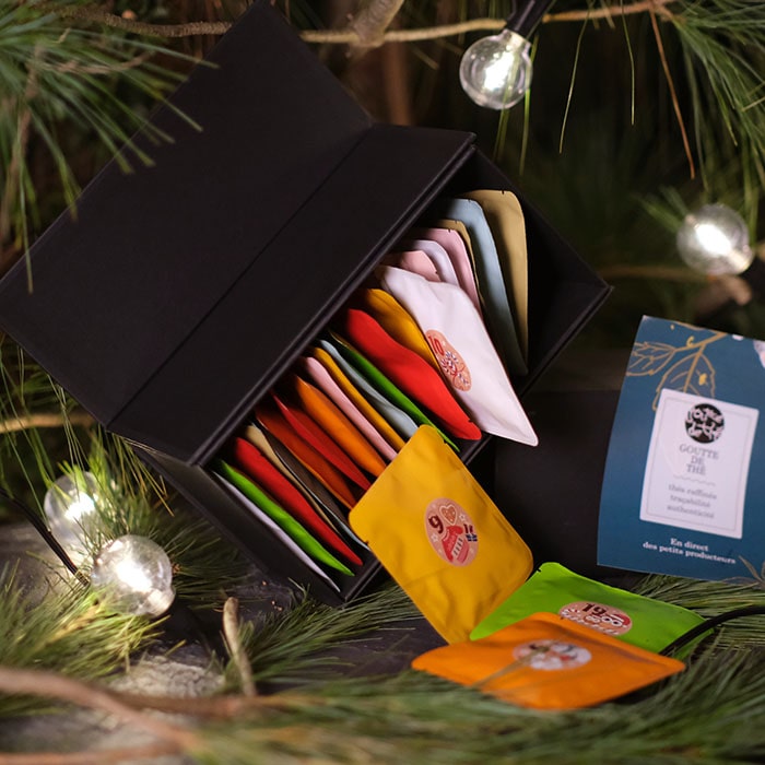 Le Calendrier de l’Avent 2025 – Édition Spéciale Goutte de Thé vous invite à un voyage sensoriel unique, à la découverte de 24 grands crus d’origine, issus exclusivement de petits producteurs passionnés.
